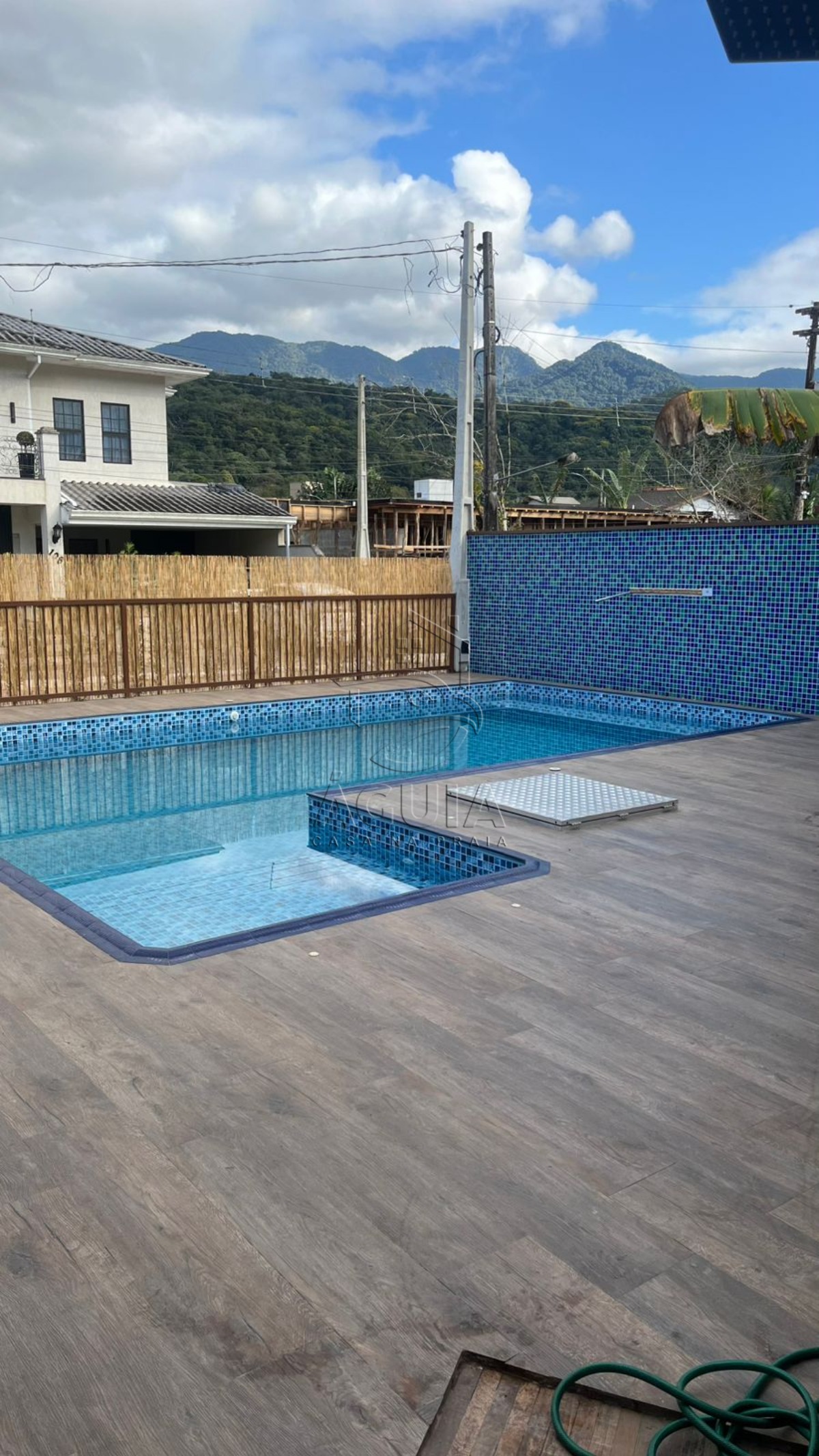 Piscina 8x4 com hidro e iluminação, ideal para lazer e relaxamento