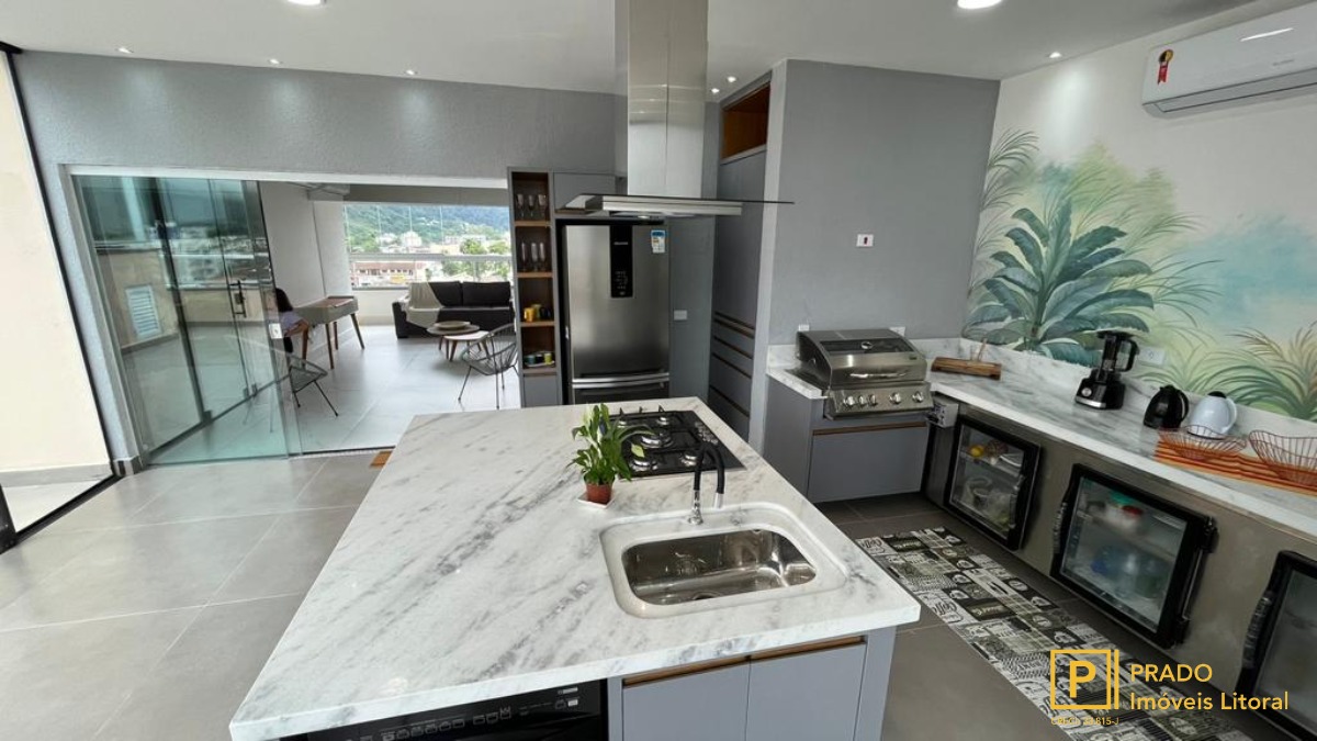 Cobertura no Centro de Ubatuba, com 3 Dormitórios sendo 2 Suítes, 1 Banheiro, 1 Lavabo, 1 Varanda bem ampla Gourmet, 2 Armários Náuticos , Academia e 2 Vagas de garagem. Todo planejado com tudo Prime de excelente bom gosto.