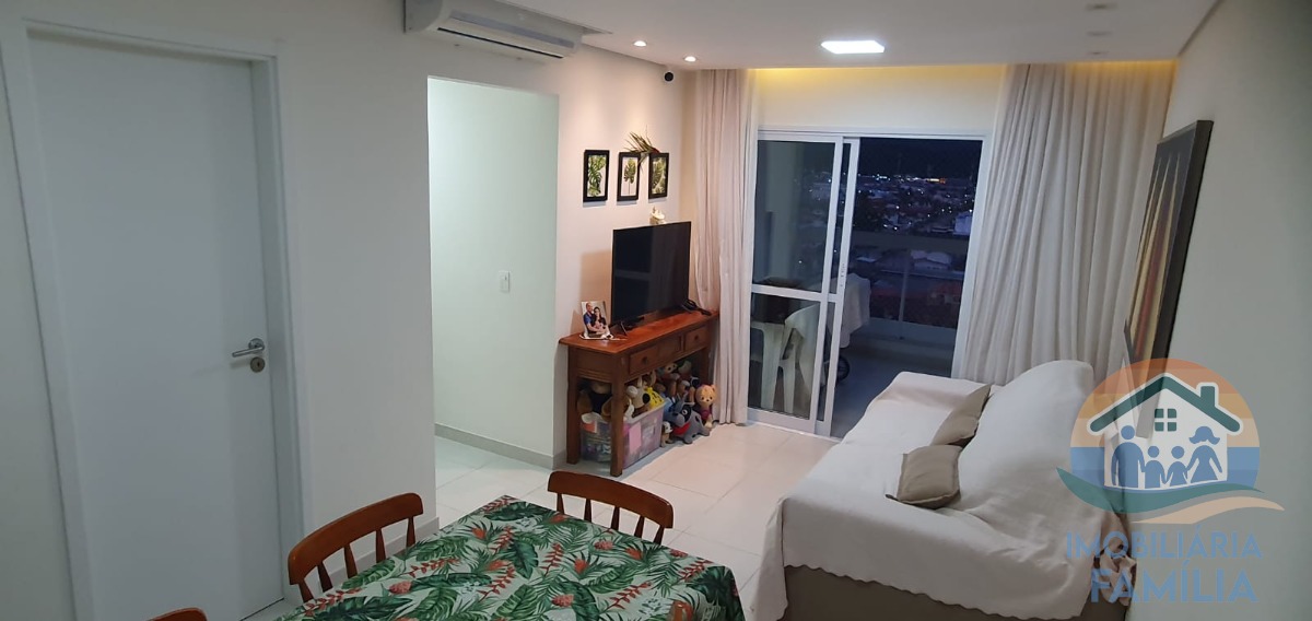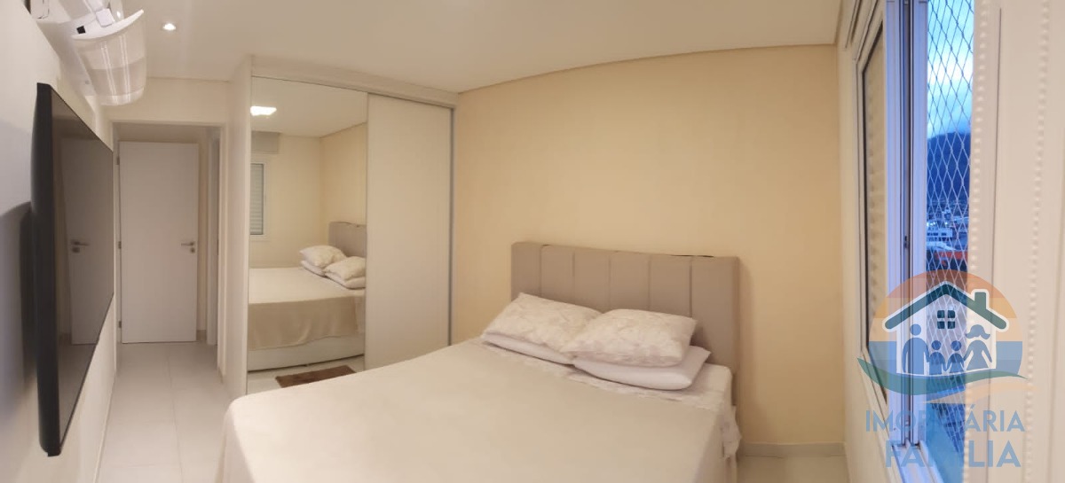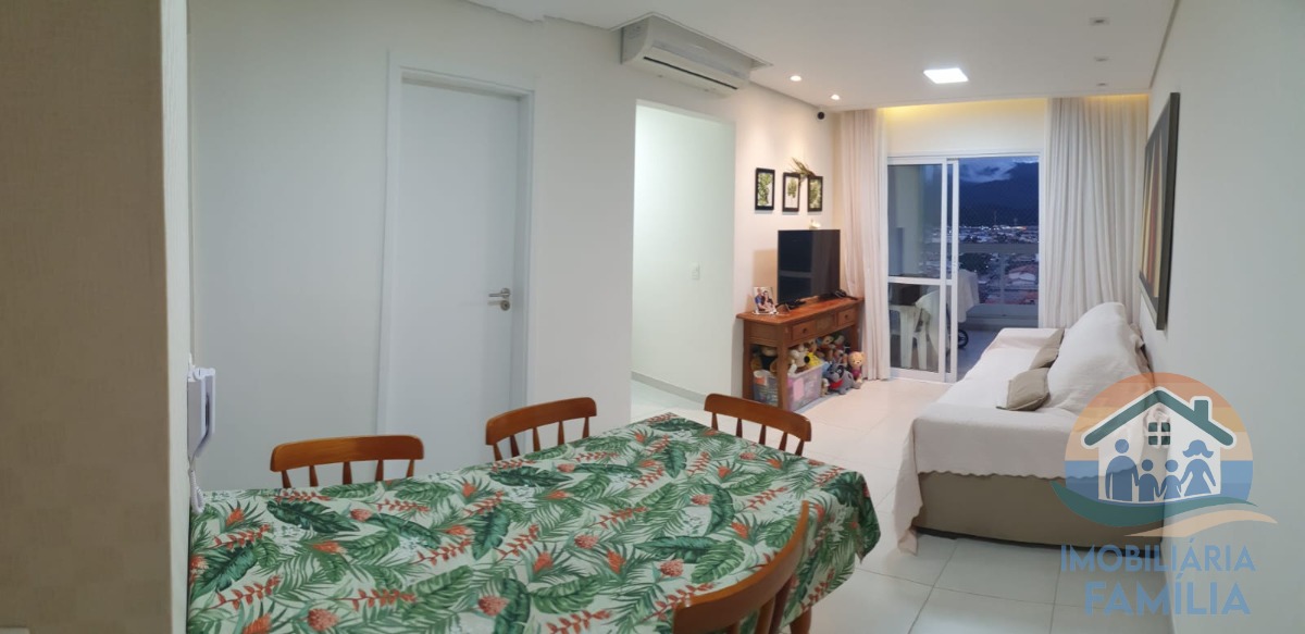 Unidade conta com metragem de 67M² com sala ampla com dois ambientes e ar condicionado, cozinha com armários planejados, dois dormitórios com ar condicionado (1 suíte), varanda gourmet com fechamento móvel de vidro, vista mar e churrasqueira a carvão, área de serviços, e dois wc.