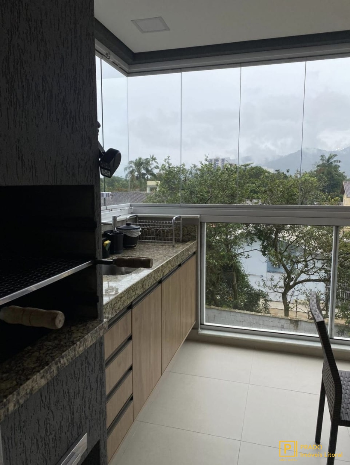 A varanda gourmet, equipada com churrasqueira, é um convite para momentos de descontração.
