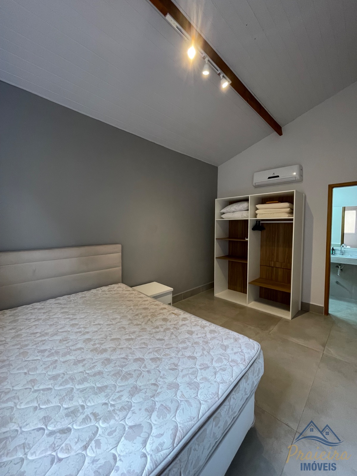 No andar superior, a casa conta com 3 suítes e no condomínio dispõe de uma piscina compartilhada para aproveitar os dias de sol.