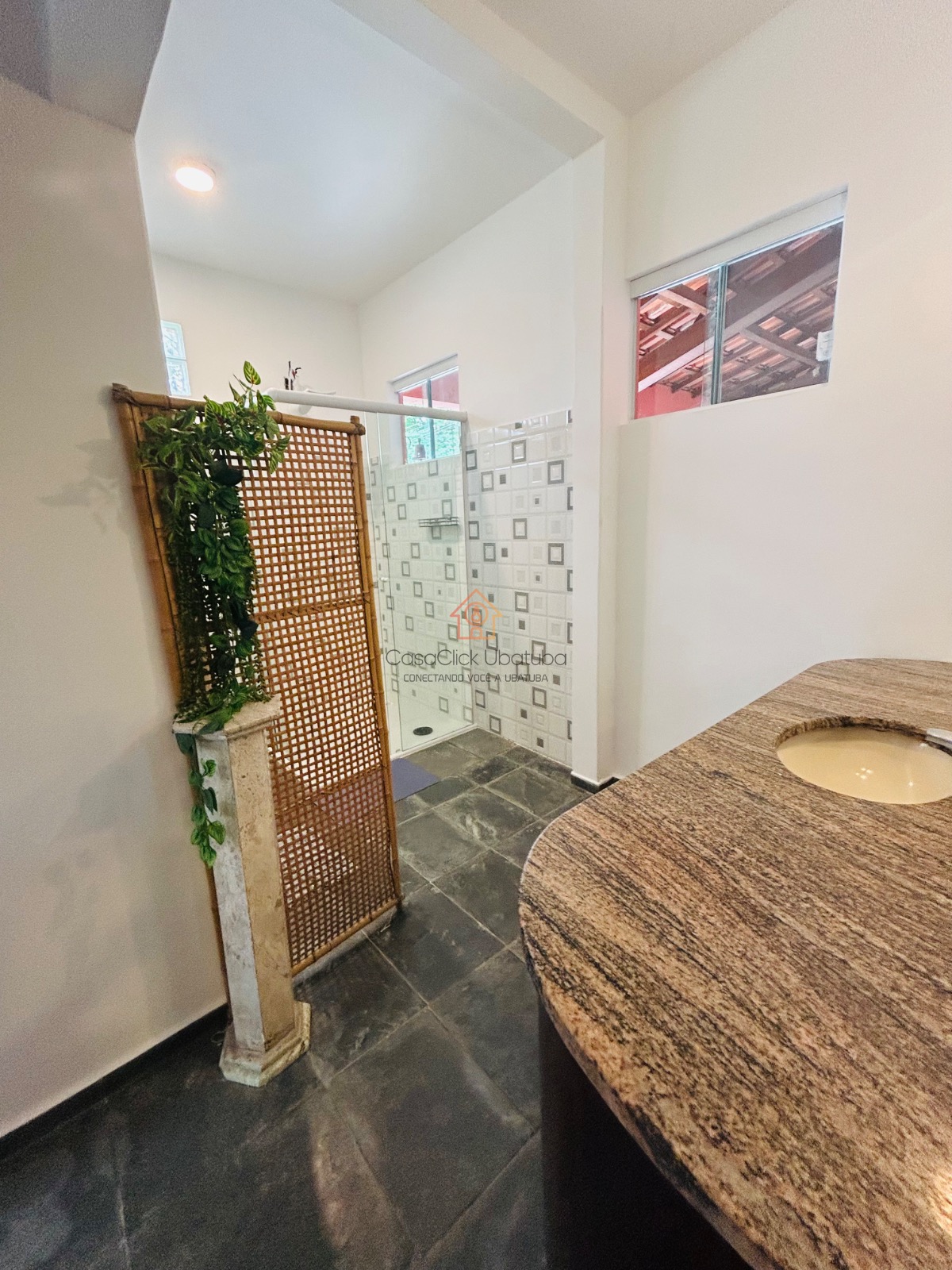 A casa também possui ventiladores e ar condicionado, garantindo conforto em todas as estações.