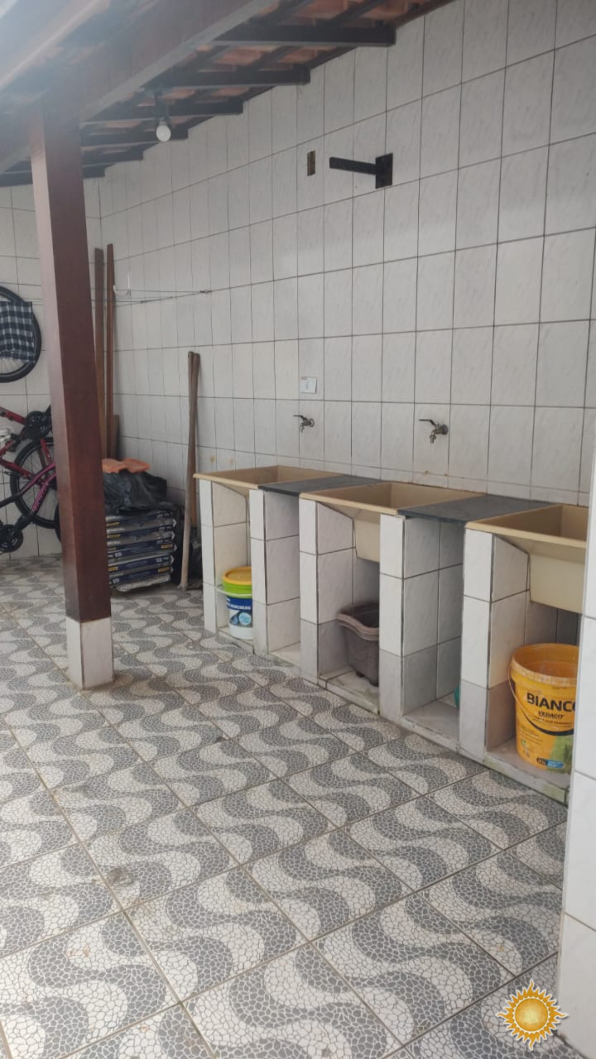 * Área comum do condomínio com tanques, duchas, lixeiras.