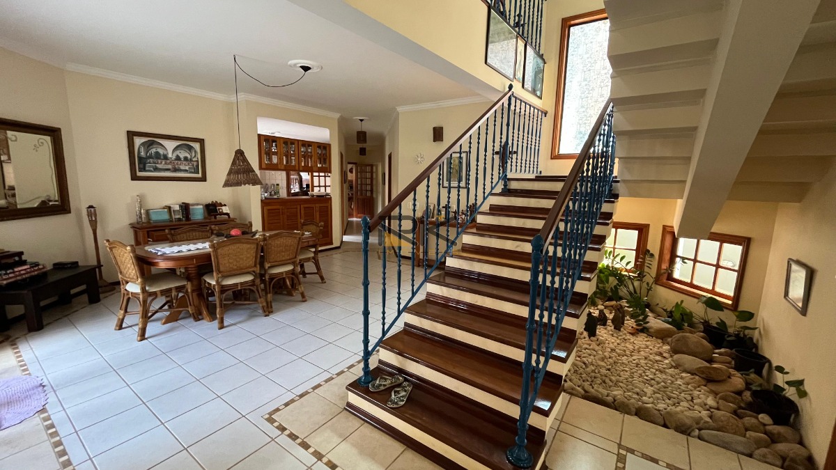 A casa também possui dois lavabos para a conveniência dos convidados, além de duas suítes no térreo, ideais para acomodar visitantes ou membros da família com privacidade. No piso superior, quatro suítes adicionais oferecem conforto e tranquilidade, proporcionando aos moradores um refúgio privativo para descanso e relaxamento.